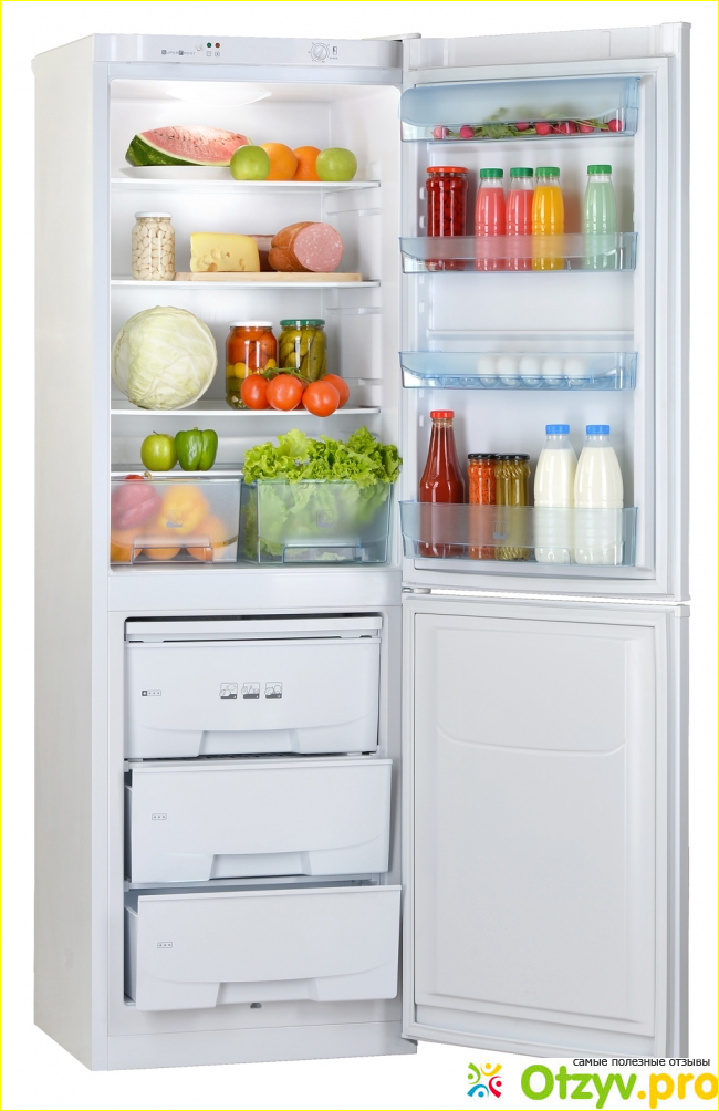 - данный холодильник укомплектован цельнолитными ящиками, которые на самом деле очень прочные и надежные. В них можно удобно и безопасно хранить большое количество продуктов, особенно хорошо они подходят для замороженных. Ящики достаются без труда. А еще они способны выдержать даже сильные удары;