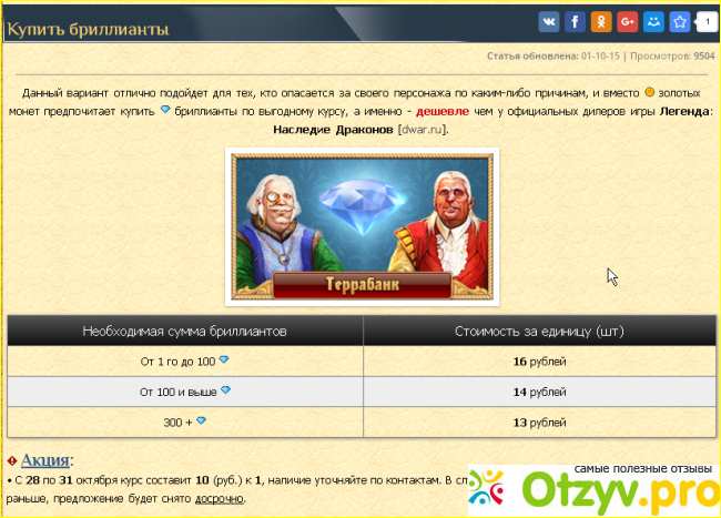 Покупал бриллианты на этом сайте для игры dwar, сайт обещает выгодный обмен 10к1, на первый взгляд сайт внушает доверие, также содержит не мало информации по самой игре, но после перевода 400руб владельцу сайта на киви кошелек - через пол часа он пропал и больше не отвечал. Уже поданы жалобы в киви, сообщество вконтакте с левыми положительными отзывами, хостинг где размещается мошеннический сайт. У меня еще маленькая сумма, судя по отзывам в интернете есть гораздо большие. Особо хочу отметить навыки мошенника в социальной инженерии, он еще до оплаты твердит о отзыве ему "но и отзыв после рассчитываю хороший получить" внушая больше доверия, еще и на сайте у него есть интересный раздел " Осторожно Кидалы ", по сути сам являясь кидалой втирается в доверие.