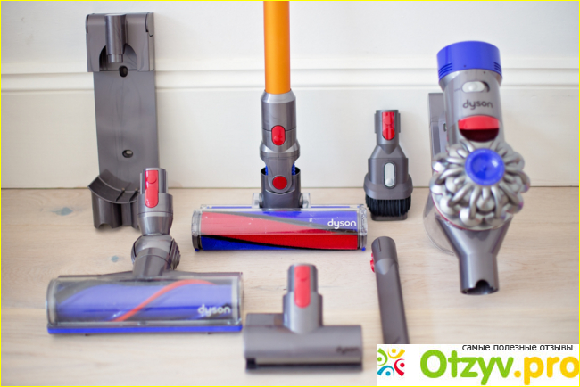 Никаких особых преимуществ более у данного пылесоса нет, нет дисплея на пылесосе. В комплекте с самим пылесосом идут несколько насадок для уборки в труднодоступных местах и инструкция по эксплуатации на русском языке. Много электричества пылесос Dyson v8 absolute не потребляет - и это безусловно одно из важных его преимуществ. Самое главное, что он довольно удобный, легкий, не надо возиться со шнурами, аккумулятора хватает на продолжительный период работы, он не так сильно шумит и не напрягает голову.