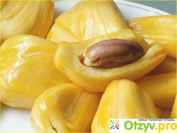 В плане разделывания все так же довольно просто. Разделывать джекфрут стоит в перчатках или же без них, но при этом смазать руки растительным маслом, потому что на кожуре и в некоторых частях фрукта есть вязкие и липкие места. Просто при помощи ножа обрезаем кожуру. Семян у него очень много, примерно до 500 штук, но они мелкие, так что не вырезаем, а просто при употреблении их выплевываем. Мякоть просто можно нарезать на небольшие фрагменты.