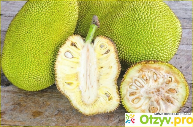 Как я уже писала выше, то фрукт экзотического происхождения и растет он в теплом климате. Растет плод на дереве. Само дерево вечно зеленое. И что интересно так это то, что растет джекфрут не на ветках, как мы к тому привыкли, а именно на самом стволе. Это очень большой фрукт и весить может от 3 килограмм и даже до 11. В диаметре что-то около 20 см. Кожура зеленого оттенка и поверх укрыта как бы мелкими шипами. Сама форма овальная. Вкус у него сладкий, но не приторный, как раз именно то, что мне больше всего в нем нравится. Мякоть очень мягкая, к тому же немного как бы вязкая и липкая.