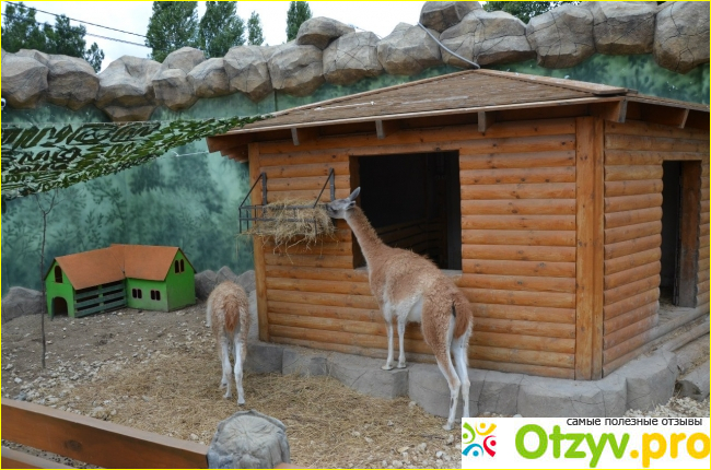 В закрытых площадках, за толстым стеклом, находятся хищники. У каждого вольера есть табличка с названием животного. Здесь есть ламы, леопарды, обезьяны, медведи, тигры и другие животные.