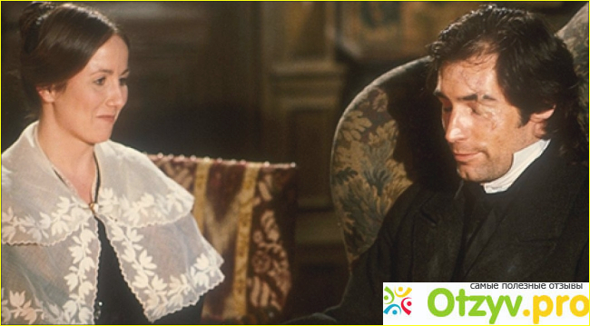 А Тимоти Далтон слишком затмевает скучную Зилу Кларк. Он играет выразительно и достаточно точно попадает в образ, но, обращаясь к партнёрше, при этом остаётся в одиночестве, словно разыгрывает спектакль одного актёра. Большинство его эмоциональных посылов как будто наталкивается на непроницаемую стену. Короче говоря, в эту пару нисколько не верится. После предыдущей экранизации контраст слишком сильный, там исключительно на гармоничном взаимодействии Сорчи Кьюсак и Майкла Джэйстона держался весь сюжет. Хотя и Рочестер Далтона не сразу понравился мне из-за безмерного реттобатлеровского ехидства, которое лишь постепенно сгладилось и сменилось другими эмоциями, но вот сцены в Ферндине он играл великолепно и был очень хорош, несмотря на безобразящий грим.