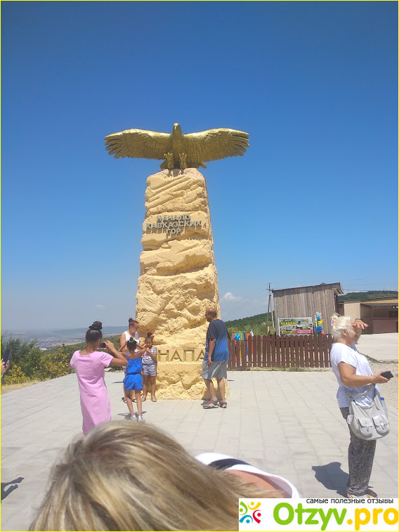 Самая первая остановка - это Статуя парящего орла, так в Анапе обозначено начало Кавказских гор. Расположена она на первом перевале с большой смотровой площадкой, где открывается отличный вид на всю Анапу.