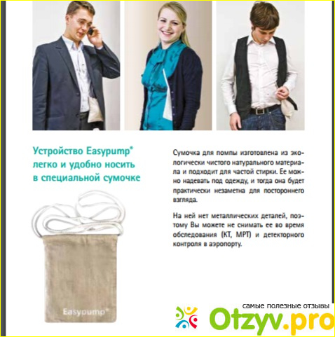После подключения помпы, место подключения заклеивается водонепроницаемым пластырем и пациента выписывают домой. Помпу можно носить в кармане или небольшой сумочке на ремешке.