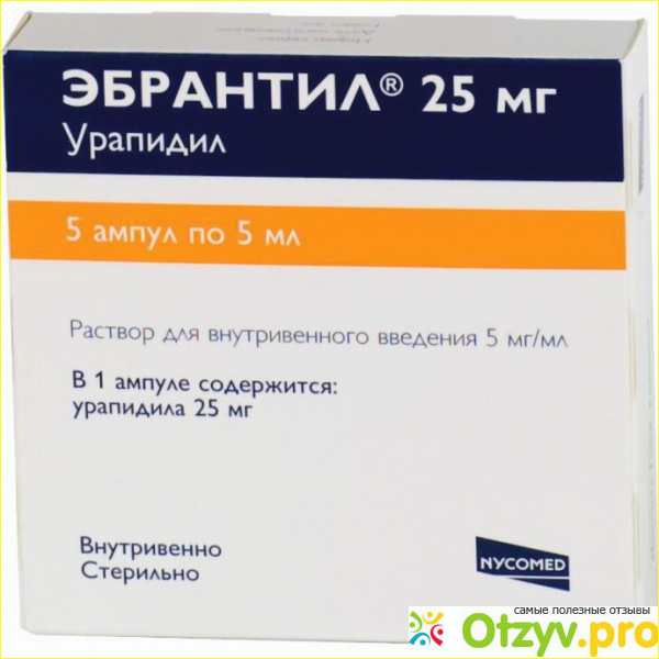 Героем моего обзора является антигипертензивный препарат Эбрантил, который назначается для купирования как раз-таки гипертонического криза, артериальной гипертензии в тяжелой фазе развития и так далее. Активным веществом является урапидила гидрохлорид, выпускается в форме раствора для внутривенного введения, капсулы. Относится к лекарственным средствам с гипотензивными свойствами. Отличное средство для облегчения гипертонического криза. При приеме этого препарата при снижении артериального давления важно не иметь рефлекторного повышения частоты сердечных сокращений, не влиять на сердечный выброс, снижать нагрузку на сердце до и после. Применяют в случае осложненного гипертонического криза в инъекционной форме для быстрого снижения давления, уже начинается снижение укола, во время введения препарата необходимо постоянно измерять артериальное давление, чтобы избежать гипотонии.