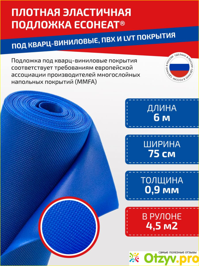 Укладывается подложка ровным слоем без волн, листы не скручиваются. Стыки я склеивал клейкой лентой. Кварц-винил сверху лег плотно. Как итог - у меня получилось ровное и комфортное напольное покрытие. В остальном - время покажет, как поведет себя подложка и кварц-винил. Но я уверена, что с таким качественным материалом мои полы прослужат мне долго)
