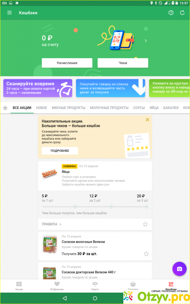 В целом, повторюсь, данная программа оказалась очень полезной для нашей семьи, мы теперь, идя в магазин, четко знаем, какие товары по скидке мы купим, знаем, сколько потратим на это, да еще и получим небольшой возврат денег в виде кэшбека.