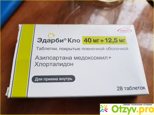 Эдарби Кло это комбинированное антигипертензивное средство, которое выпускается в виде таблеток. Активное действующее вещество, которое содержится в препарате это медоксомил азилсартана калия и еще хлорталидон. Если эти вещества совместно входят в состав препарата, то они позволяют оказать более выраженный и быстрый путь к снижению давления, чем употребление этих компонентов по отдельности. Медоксомил азилсартана калия позволяет оказать сосудосуживающий эффект, помогает стимулировать синтезы альдостерона, увеличит реабсорбацию почками натрия. Хлорталидон это своего рода диуретик, который помогает увеличивать вывод натрия ионов и хлора в каналах почках и усиливает диурез. Препарат рекомендуется применять при эссенциальной гипертензии, назначается препарат врачом и необходим в комплексном лечении.
