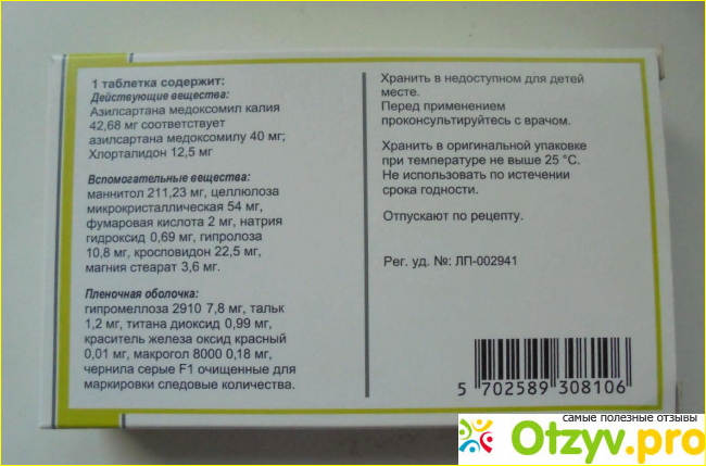 Препарат относится к гипертензивным лекарственным средствам, действующим веществом служит азилсартана медоксомил в дозировке по 40 мг и хлорталидон в дозировке по 12,5 мг.