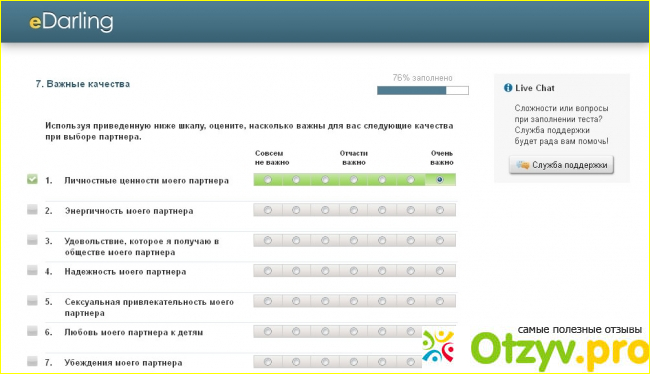 Я сама познакомилась со своим теперешним молодым человеком (уже будущим супругом) через такой вот сайт. Как вы уже, вероятно, догадались из названия темы, речь идет о сайте знакомств Edarling. Чем меня привлек именно этот сервис? Да все очень просто! На этом сайте используется серьезная многоуровневая система психологического тестирования. Чтобы выявить черты личности и особенности поведенческого характера, человеку приходится отвечать на опросник, состоящий из двухсот семидесяти вопросов. Конечно, у меня на этот тест ушло всего полчаса, так как сайт имеет очень удобный функционал. Однако такое большое количество вопросов имеет сразу два плюса: во-первых, вы больше узнаете о личности понравившегося вас человека. Во-вторых, такое количество вопросов отпугнет извращенцев. Вряд ли так уж много людей станет стараться, отвечая на вопросы, только ради того, чтобы найти партнера для секса. Для этого есть и более простые сайты.