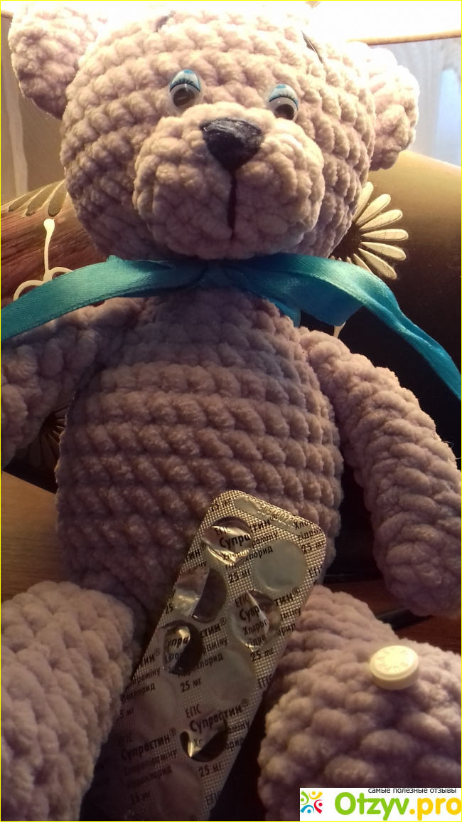 Когда и при ситуации купила его первый раз уже не припомню, таких ситуаций было уже много. Последняя из них: мне назначили курс антибиотиков, где-то на середине курса проснулась с жутким зудом в ногах, осмотрела себя, а я вся покрылась жуткой крапивницей. Как всегда первое средство - Супрастин. Выпила первую таблетку и уже в течении 15-20 минут прошел зуд, перестали чесаться ноги, уменьшилось покраснение. С каждой последующей таблеткой становилось все легче и лучше. Всего в день нужно выпивать по 3 таблетки во время еды.