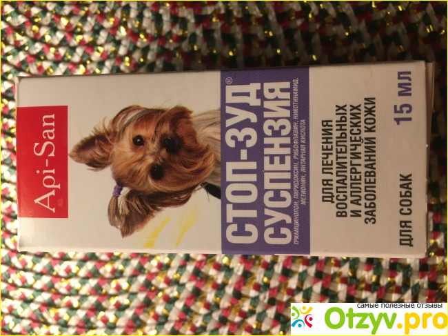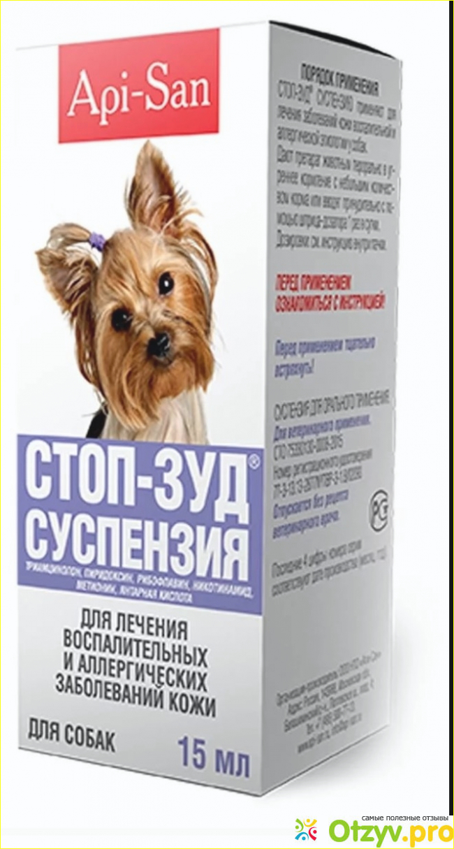 На этот раз это будет СУСПЕНЗИЯ СТОП-ЗУД, для лечения воспалительных и аллергических заболеваний кожи, у собак. Производитель русская компания Api-San, которая производит ветеринарные лекарственных средства для наших питомцев!