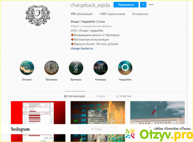На самом деле социальная сеть ведется крайне неактивно – всего 178 публикаций. Однако есть интересный момент: число подписчиков – более тысячи. А теперь рассуждаем логически. Пусть там вся семерка сотрудников и начальник, плюс их семьи, друзья. Итого: примерно 60-80-100 человек. Скажите честно, если бы вас не интересовала эта тема, вы бы подписались на этот канал? Ответ очевиден. С высокой долей вероятности 80-90% из остальной тысячи – это клиенты, которым реально помогли, то есть 700-800 человек. Согласитесь, показатель очень убедительный, чтобы настроить лично меня на положительное отношение к Эгиде.