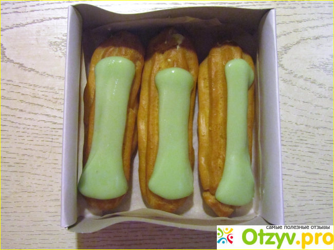Помадка тоже не жирная, а подозреваю, на основе сахарной глазури нежного фисташкового цвета. Трубочка эклера тоже очень нежная, не пересушенная, не хрустит на зубах.