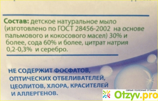 Рассмотрим состав нашего порошка: на первых позициях идёт натуральное мыло и сода.