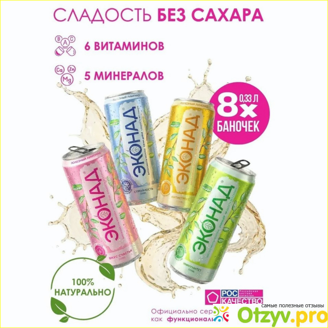Начну с того, что лимонад Эконад выпускается с четырьмя названиями: Антистресс, Иммунитет, Стройность, Счастье. Я решил попробовать сразу все и заказал набор-ассорти из четырех баночек. Ну точнее всего баночек в наборе было 8 – каждого наименования по 2 банки.