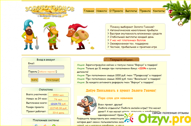 Сегодня я хочу поделиться с вами моим отрицательным отзывом о Экономической игре Golden Mins ( Золото гномов). Итак начнем с того что эта Игра полный обман ( лох- трон). Заманивают они к себе с сети благодаря серфингу на других игровых сайтах, где сидят тысячи людей.
