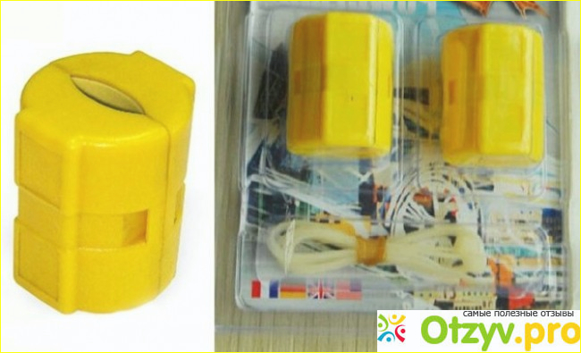 И что же я увидела, когда распечатала красивую новенькую коробочку? Там лежала упакованная в картон и сверху в слюде такая интересная желтенькая штучка в форме цилиндра, такой себе зажим для шланга, на который полагались большие надежды. Но уже тогда в мою голову начали пробираться сомнения по этому поводу. И, как оказалось немного позже, не зря. Почему? Да потому, что это полная фигня! Данная покупка так и смогла оправдать всех моих ожиданий и надежд. Такое бывает. К сожалению.