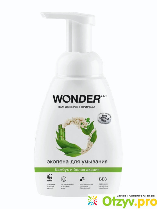 Очень нравится для умывания использовать разные пенки. И так как я являюсь поклонницей продукции Wonder Lab, то решила попробовать их новый продукт - экопену для умывания с ароматом бамбука и белой акации. Флакон небольшой, удобного формата, объемом 240 мл, симпатично оформлен.