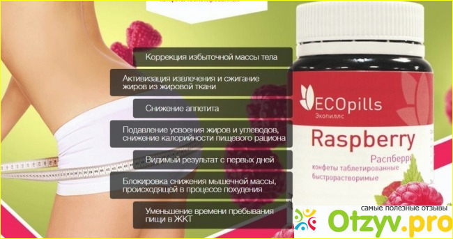 Все фото конфет идут рядом с малиной. И это не удивительно, ведь именно основным ингредиентом выступает малиновый кетон. Иными словами экстракт вкусной ягоды. Этот экстракт обеспечивает процесс активного похудения, Главное, что процесс неопасный, ведь он натуральный. Полезные свойства малины известны давно. Используют ягоды при разных недугах. А диетологов ягода заинтересовала не так давно. Произошло это после исследования такого свойства вкусной ягоды, как способность нейтрализовать подкожные жиры путем расщепления и вывода их естественным путем. Почему нельзя просто насладиться ягодами? Ответ очевидный, из всего состава для снижения веса ценными является только кетон. Чтобы набрать необходимое его количество, надо съесть ведро. Ученые умело извлекают именно кетон, грамотно хранят в виде этих конфет, которые назвали Eco Pills Raspberry. Состав конфет дополнен другими полезными веществами.