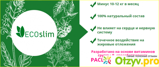 В отличие от других препаратов позволяющих терять килограммы, ЭкоСлим дает эффект пролонгированного действия, что позволяет по истечение года не набирать вес вновь. Также у препарата:
