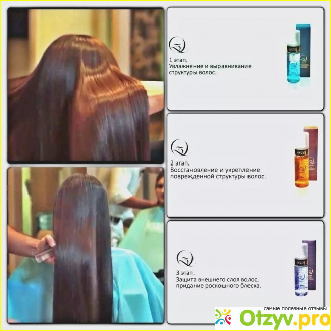 После пройденной процедуры отмечается лёгкое расчёсывания волос, при этом они совершенно не путаются и с лёгкостью укладываются.