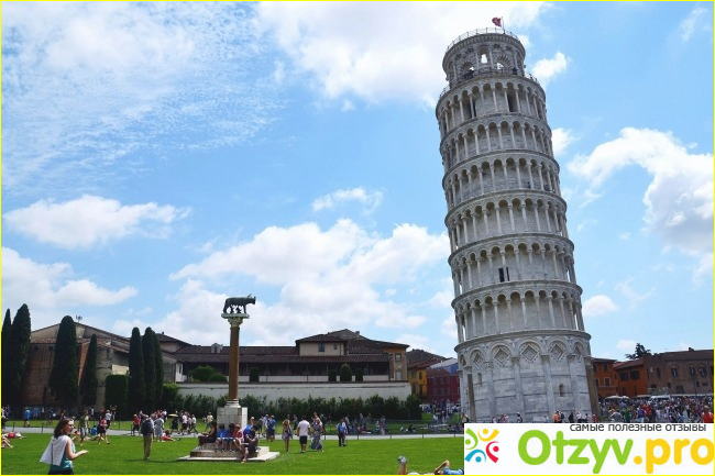 Еще одной самой знаменитой достопримечательностью Италии является Пизанская башня. Её точно не спутаете ни с одной другой башней. Это конструкция представляет собой падающую башню. Такого я еще не видела нигде. Башня расположена в городе Пиза.