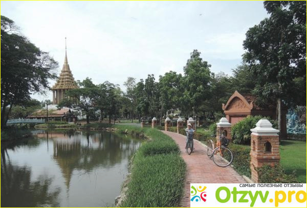 Расположен он приблизительно в 36 км от Бангкока. Поездка на такси на 4 человек нам встала в одну сторону 260 бат, обратно-370(были ужасные пробки), вплоть до квартиры ехали около 2 часа. Еще дешевле можно доехать до парка на автобусах с пересадками, однако мы этот вариант не рассматривали, нам семьей на такси комфортнее. Территория парка весьма огромная. Обойти парк на своих двоих за один день, да еще по жаре, невозможно. Лучше воспользоваться велосипедом, аренда которого уже входит в стоимость билета, либо взять на прокат автомобиль и осматривать парк на ней. Что касается стоимости, если мне не изменяет память, то билет в парк на одного человека 700 бат. Аренда автомобиля - по 150 бат /час.