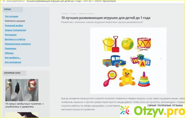 В целом, статья построена не плохо и интересно. Перечислены игрушки и их важность в конкретный возрастной период. Также есть наглядные изображения и реклама тех или иных товаров, на яндексе. Вот вам и хлеб ресурса "Эксперт цен". Думаю с самого начала было понятно, что он не создан компанией энтузиастов, которые за "бесплатно" пишут о том насколько хорош тот или иной товар конкретного бренда.