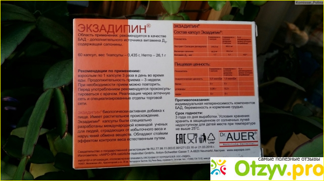 Вашему вниманию предлагаю препарат для похудения Экзадипин, он австрийского производства, представляет собой биологически активную добавку к пище и для комплексного лечения сахарного диабета.
