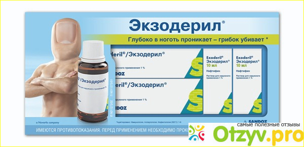Экзодерил - это мощное современное средство для борьбы с грибковыми поражениями ногтей рук и ног. Только для наружного применения. В составе которого действующее вещество нафтифин гидрохлорид, и вспомогательные этанол, пропилен гликоль.