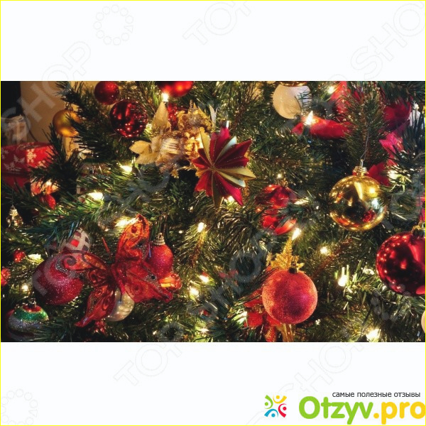 Достоинства: устойчива к воспламенению, дизайн, цвет елки, гирлянда