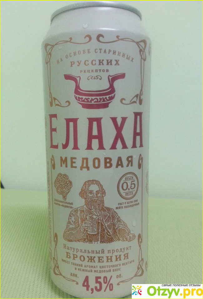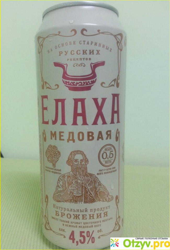 Как-то раз, когда я выбирал пиво в магазине "Красное и белое", мне на глаза попалась жестяная тара объёмом в половину литра, на которой красовалось название: "Елаха медовая" и рядом был нарисован русский мужичок с бородой и деревянной большой кружкой в руках! Меня поманило к себе слово "медовая", ведь подразумевало в себе что-то сладкое! Напиток оказался не столь дорогим, в пятьдесят четыре рубля, так что, такие деньги, на мой взгляд, вполне оправдывали качество этого напитка!