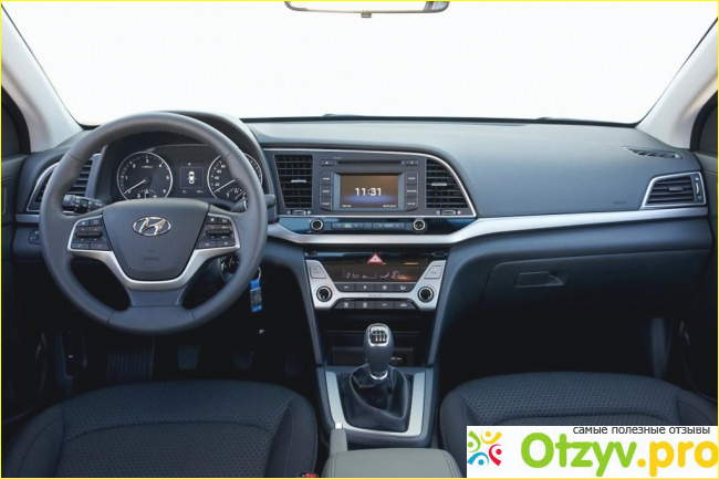 Заглянем в салон элантры 2017 года, здесь производитель выбрал уже усовершенствованные материалы и сделал пластик более мягкий и приятным на ощупь по ощущениям, водительское место превосходно регулируется и настраивается под рост человека и максимальное удобство для положения рук на рулевой части. Все находится пд рукой, управление, центральная консоль современная и привлекательная, можно ее отнести к категории классического типа. Есть бортовой компьютер с приложениями и программами, также навигатор, музыка и прочие необходимые вещи для современного человека. Придвижении шумоизоляция средняя. Также модель оснащена подушками безопасности для водителя и всех его пассажиров. Сидения переднего пассажира не менее удобнее, чем у водителя, его также можно отрегулировать и настроить под себя.