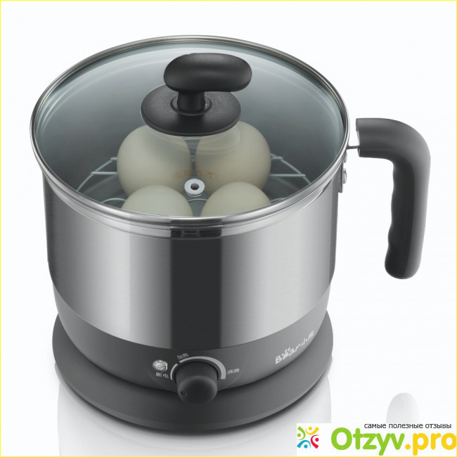 Кастрюля электрическая – это нержавеющая емкость в литровом объеме. Для быстрой варки супчика или гречневой каши на двоих более чем достаточно. Нагревательный элемент полностью закрыт и предохранен от перегрева, так как кастрюля не включится пока не остынет. Электрическое устройство можно поворачивать на 360* для вашего удобства. Также всегда можно увидеть, что кастрюлька в данный момент не работает на световом индикаторе. Температура воды может нагреваться от 60* до 100*. Если по какой-то причине воды в емкости недостаточно для варки, то кастрюлька не включится или выключится. С изделием идет съемная ручка, а также предусмотрен отсек для шнура. В обычной жизни она занимает место на кухне и смотрится обычным кувшином с прозрачной крышкой, шнур всегда спрятан. Весит кастрюля 1, 11 килограмм, мощность потребления 950 Вт. Компания производитель известный бренд, головной офис находится в Гонконге.