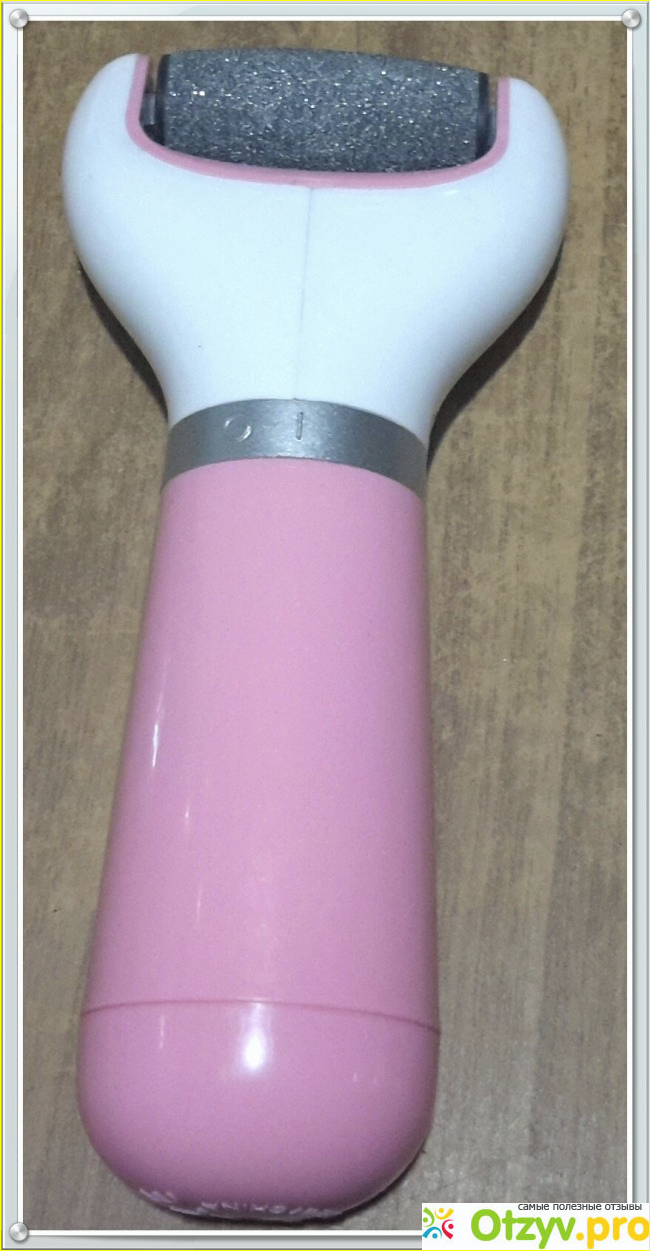 Прибор этот работает и от батареек, и от электросети, через шнур USB. Скорость вращения роликов одна. Ролики съёмные, сначала используешь ролик более жёсткий, для чистки пяток, а затем, для полировки. Пользоваться этим прибором не сложно. Есть два способа, это от электричества и от батареек. Включается прибор простым поворотом ободка, на котором есть две отметки: "0"- прибор выключен и "1" - включён.