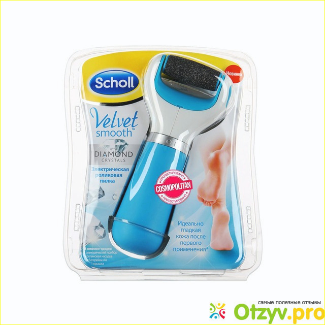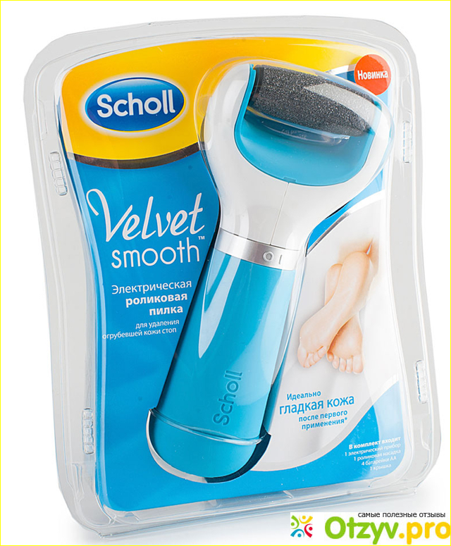 Выглядит пилка шолль просто, по своей форме напоминает массивную бритву. Работает она от зарядки, то есть подзаряжать ее нужно от сети. Прибор достаточно простой в использовании и особых знаний в его применении не требует.