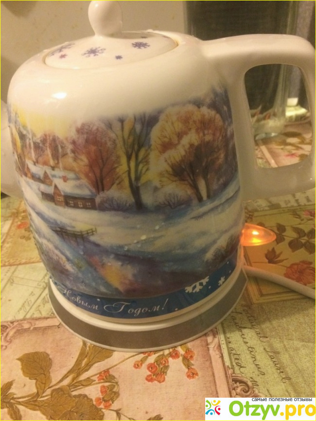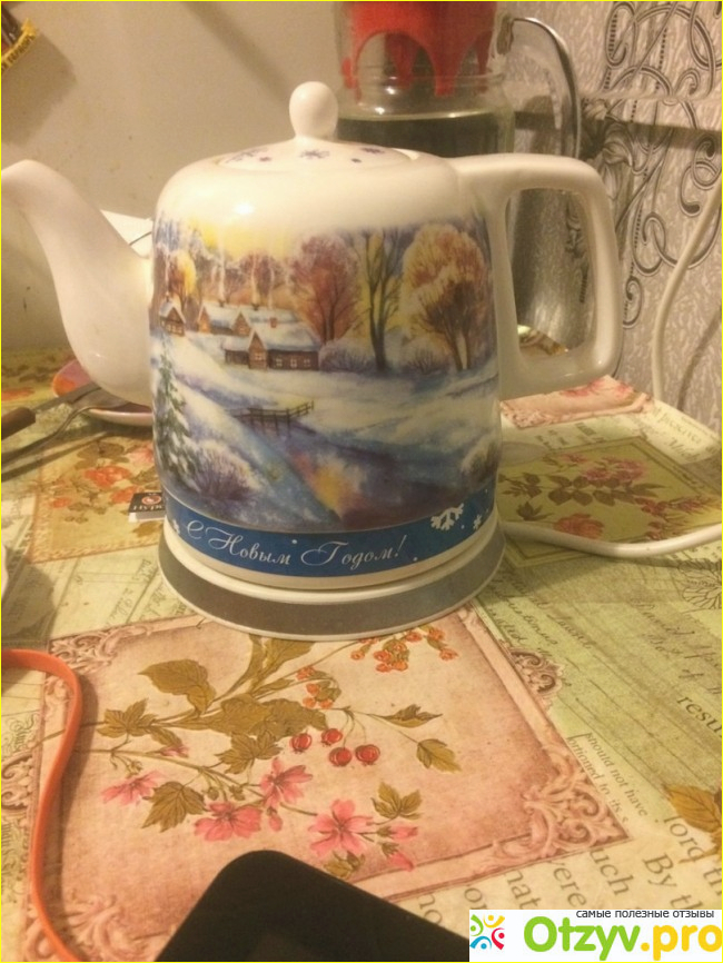 Помимо всех положительных технических характеристик, внешне чайник выглядит очень красиво. Роспись выполненная на чайнике добавляет новогоднего настроения и уюта в общую картину кухонного интерьера :)