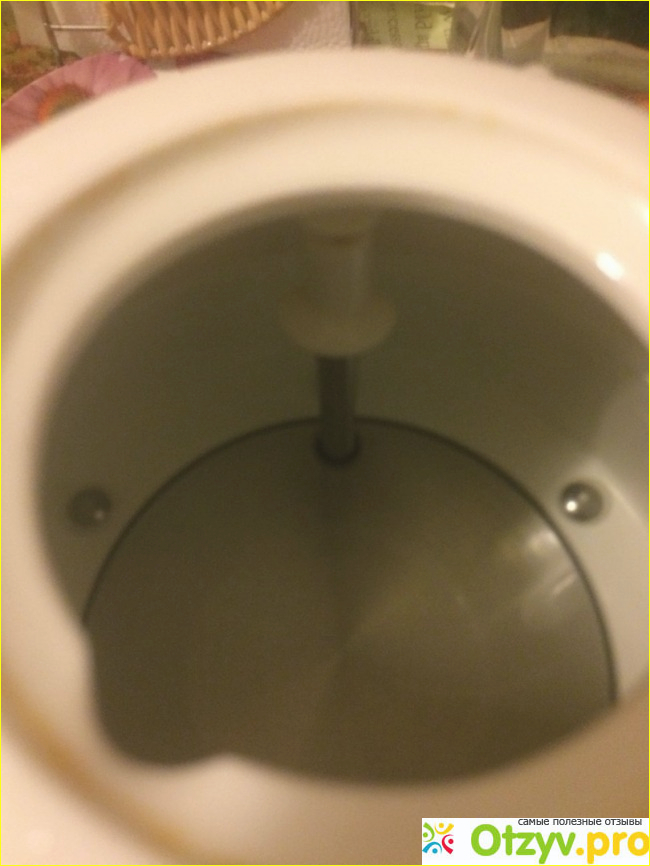 Минусом является, что при превышении объёма жидкости в чайнике, вода стекает снизу. Ещё одним минусом, для нашей семьи в частности, является небольшой объём чайника (всего 1,2 литра).
