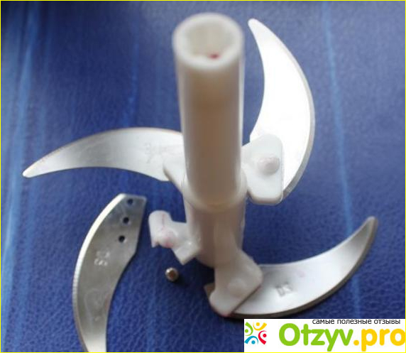 Ножи сделаны из нержавеющей стали. Марка стали 420. Из такой делают обычные лезвия для ножиков. Они хорошо противостоят коррозии и при этом не дорогие. Сплав хрома, никеля и молибдена. При нагревании и взаимодействии с едой этот материал остается инертным. Не деформируется, стойкий к истиранию. Ножи заточены и прикреплены к сердцевине под специальным наклоном, что позволяет легко разбивать на кусочки все компоненты. Длина ножей до 7 сантиметров.
