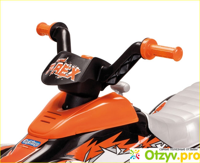 - сильный внешний вид — помимо интересной расцветки, которой я уже восхитилась выше, квадроциклу Peg Perego Corral T-Rex еще есть, чем похвастаться: декоративная антенна, две выхлопные трубы. Герметичный корпус довершает конструкцию, предохраняя водителя от контакта с проводами внутри электромобиля. Электрически двигатель также надежно защищен от попадания на него воды и грязи. Электробатареи находятся под сидением.