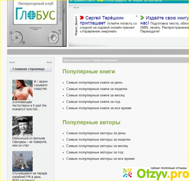 Дальше только остается выбрать интересующую книгу и прочитать рецензию на нее.