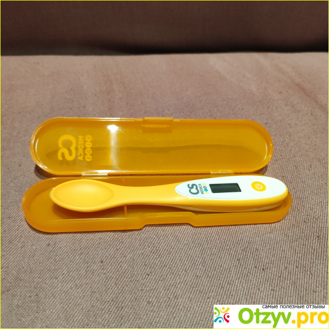 И бабушка с результатом поспорить не может. Оранжевого цвета, есть чехол, в нем храним ложку. Измерение безопасное без стекла, ртути, спирта. Измерение очень быстрое, никогда не засекала время, ждем приблизительно минуту.