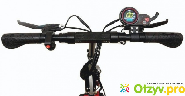На рулевом есть экран, который свидетельствует о заряде аккумулятора (на заводской зарядке проехали пятнадцать километров, при первом использовании транспортное средство требуется разрядить до конца и зарядить полностью (полная зарядка четыре часа)) и развиваемой скорости.