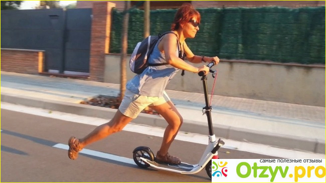 Принцип пользования этим самокатом понятен: нужно отталкиваться свободной ногой и управлять рулём - это довольно маневренное средство для передвижения, развивает достаточную скорость и облегчает движение по городу.