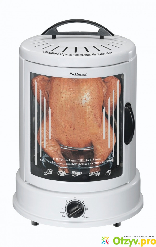 В результате изучения всех особенностей данного аппарата я остановил свой выбор на электрошашлычнице Pullman PL-1030. Обладая мощностью 650 Вт, обьем загрузки на восемь шампуров, изготовленная из нержавеющей стали это самый идеальный вариант среди всех электрошашлычниц с которыми я познакомился во время поиска. Приобрев данную модель за две тысячи семьсот рублей я остался очень доволен своей покупкой.