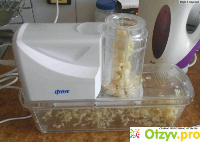 Электрическая шинковка Фея по работе своей понятна и проста, все легко устанавливается, собирается и разбирается. Все, что нужно в работе шинковке, уже есть в комплекте от производителей. Она предназначена для нарезки овощей и фруктов. В комплекте есть 7 насадок ножей, выполненных из нержавеющей качественной стали. Имеет мощность 25 Вт.