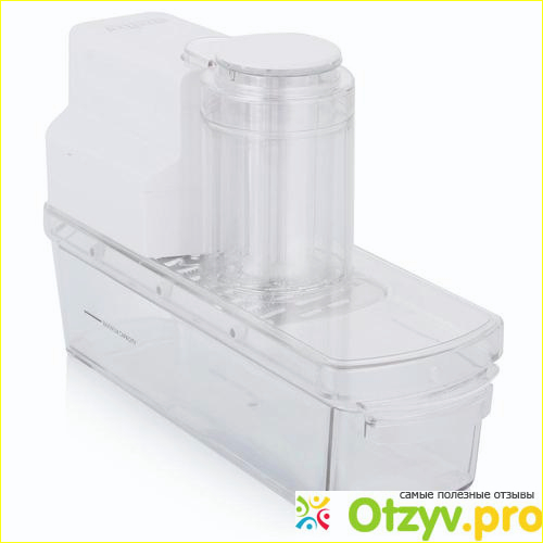 На внешний вид это пластиковый контейнер с электрическим механизмом сверху, который движется вперед-назад и делает типа все за вас!