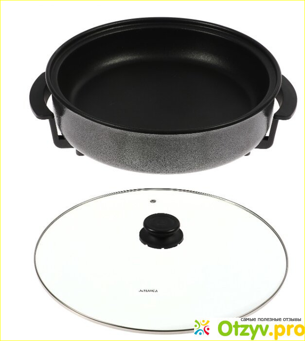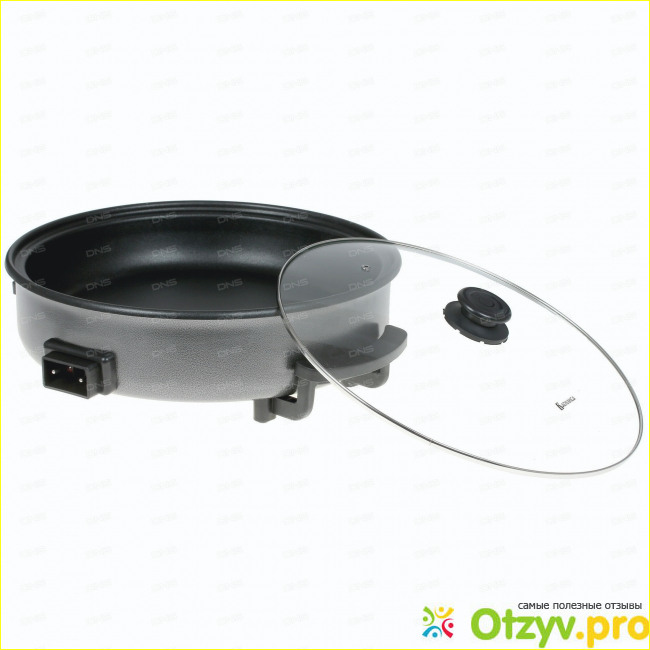 Итак, перед нами сковорода, да не простая, а электрическая. Собой представляет жаропрочную поверхность с бортами и крышкой, разумеется, что оснащена нагревательным элементом, питание от электросети. Вроде бы ничего сверхъестественного нет, по своему внешнему виду похож на обычную кухонную посуду только со шнуром.